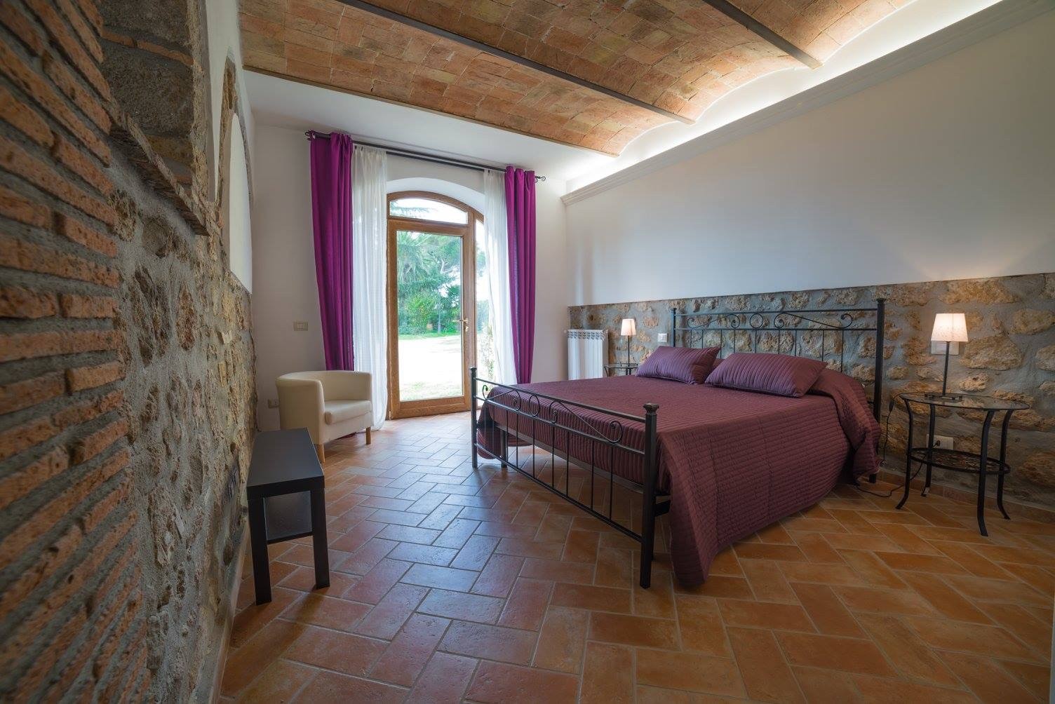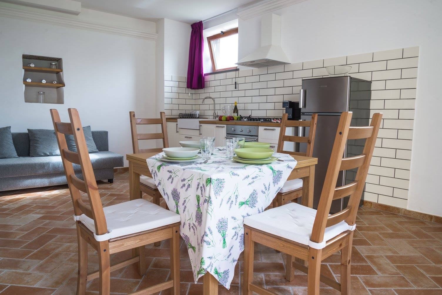 L’Officina, in cui venivano riparate le attrezzature per lavorare i terreni, è un appartamento di circa 45 mq, composto da una zona giorno con angolo cottura, un ampio bagno ed una camera da letto matrimoniale; con possibilità di ospitare ulteriori due persone in un confortevole divano letto;
